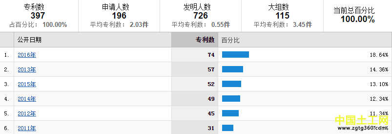 以申報專利為例,分別以“土工格柵”、“土工布”、“土工膜”為關鍵詞進行檢索,各自的數量分別為534項、404項、397項,且主要集中在近5年內。