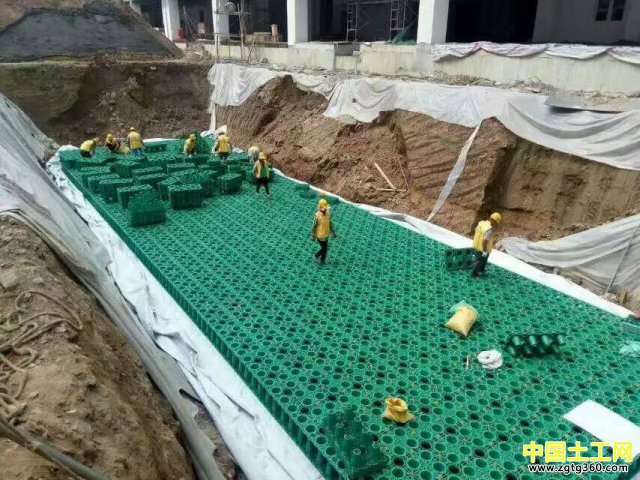 PP模塊由再生環保材料制作,材料經久耐用,耐老化、高溫、低溫,能適應各種惡劣環境,綠色環保。深埋地下不破壞整個生態環境,維護簡單,且可回收再利用。